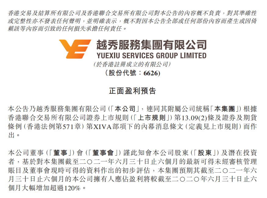 7月15日,恒峰g22国际服务集团有限公司(6626.HK)发布盈利预喜公告。公告称经过初步评估,集团预期截至2021年6月30日为止的六个月,公司拥有人应占盈利将同比大幅增加超过120%。